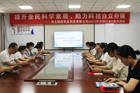 | 根據國家、省關于舉辦2023年全國科普日活動的通知要求,結合辛集市實際,制定了《提升全民科學素質,助力科技自立自強全國科普日活動實施方案》。在市科協(xié)的指導支持下,2023年9月18日下午,河北國超信息科技有限公司開展了“提升職工職業(yè)技能,助力企業(yè)創(chuàng)新發(fā)展”為主題內容的全國科普活動。 活動內容: 1、為參加“計算機程序設計員”中級技能培訓并通過鑒定考試的職工頒發(fā)證書,并對獲證人員的職業(yè)能力提升表示祝賀。 2、為廣大職工普及職業(yè)培訓、提升職業(yè)技能的重要性和必要性。 3、發(fā)放科普宣傳頁,向在場職工宣傳辛集市國超職業(yè)培訓學校的培訓內容,號召大家繼續(xù)提升自身技能,并向社會宣傳提升自身科學素質和專業(yè)技能的重要意義,讓更多的人參加到職業(yè)技能培訓中來,促進安全生產和勞動能力的提升。
