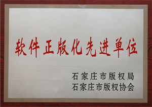 2013年9月,我公司被石家莊市版權(quán)局、石家莊市版權(quán)協(xié)會評為“軟件正版化先進(jìn)單位”。