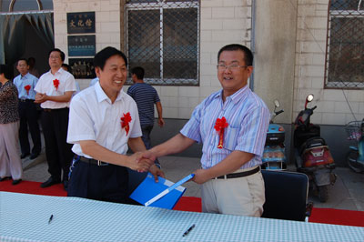 | In order to promote the development of high-tech enterprise and cultivate skilled scientific personnel, our company is appointed by Shijiazhuang Tiedao University (STU) as the education and teaching practice base of Department of Foreign Languages. On June 22, 2009, the inaugurating ceremony was held in front of our company’s gate. The attending leaders and guests were as follows: Deputy Secretary of Party Committee of STU: Sun Cairan Deputy Director of Academic Administration Office of STU: Professor Wang Keli Director of Foreign Language department of STU: Wang Lijun Director of Major Teaching and Research Section of STU: Professor Li Yujie Secretary of Communist Youth League general branch of department of Foreign Languages of STU: Xu Changzhong Intern Team lead teacher of foreign language college of STU: Professor Di Liying Deputy Chairman of Xinji People’s Congress: Wang Zhibin Deputy Secretary of Party Leadership Group, Chairman of Labor Union: Wang Xinman Vice-chairman of Xinji committee of People’s Political Consultative Conference: Ma Zhenquan Director of Xinji Industrial Promotion Bureau: Wang zhongli Director of Xinji Science and Technology Bureau: Wang Quanfu Chairman of Xinji Federation of Industry and Commerce: Cui Wenying Chairman of Xinji association for Science and Technology: Liu Pin Deputy Director of Xinji Cultural and Sports Bureau: Guo Baofu Deputy Director of Xinji Science and Technology Bureau: Zhao Songyan